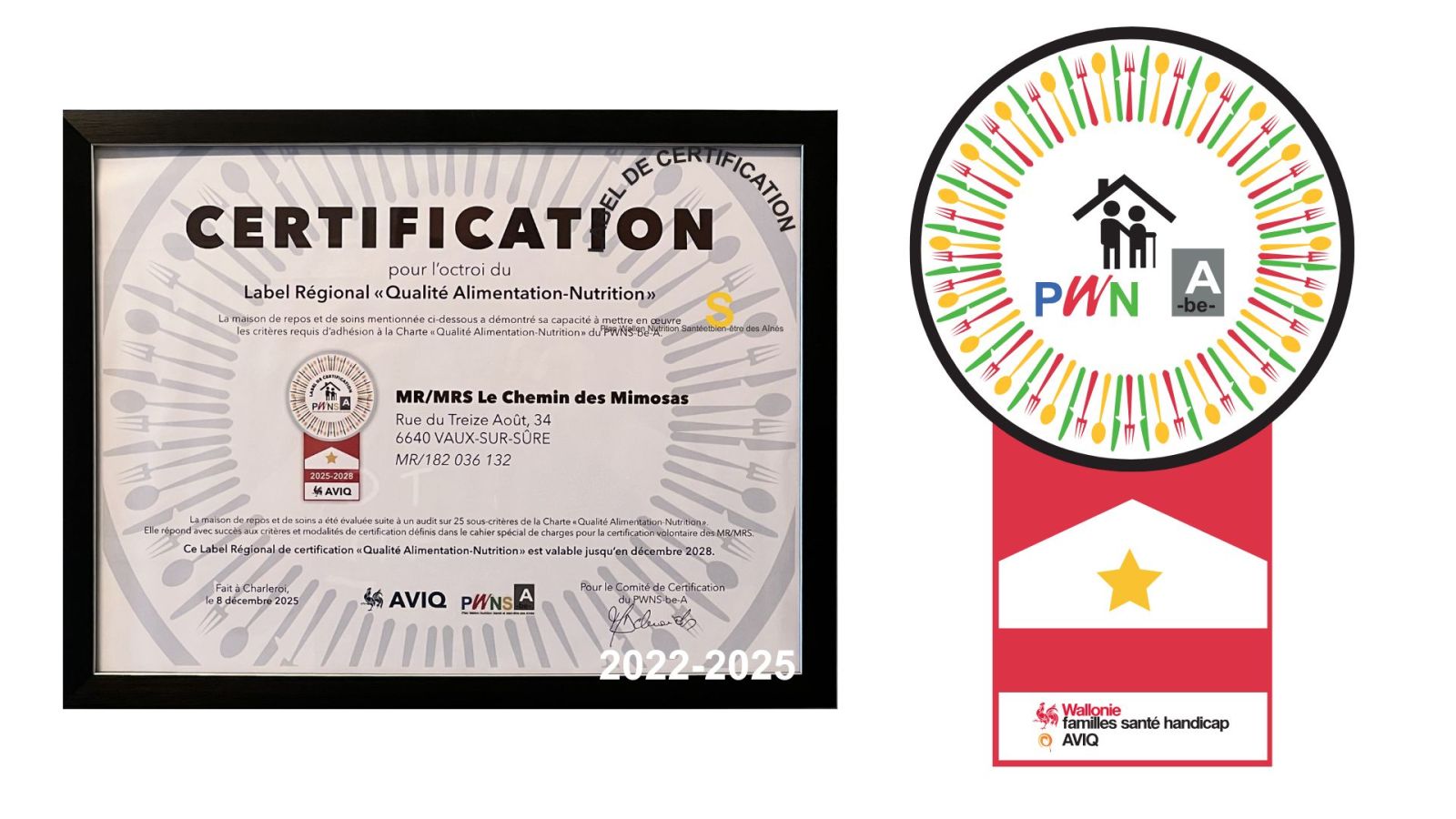Huitième maison de repos en Wallonie sur 600 à obtenir le Label Qualité Nutrition Santé, et la seule de l’arrondissement de Bastogne, Le Chemin des Mimosas rejoint un cercle restreint d’établissements engagés dans une démarche nutritionnelle exemplaire.