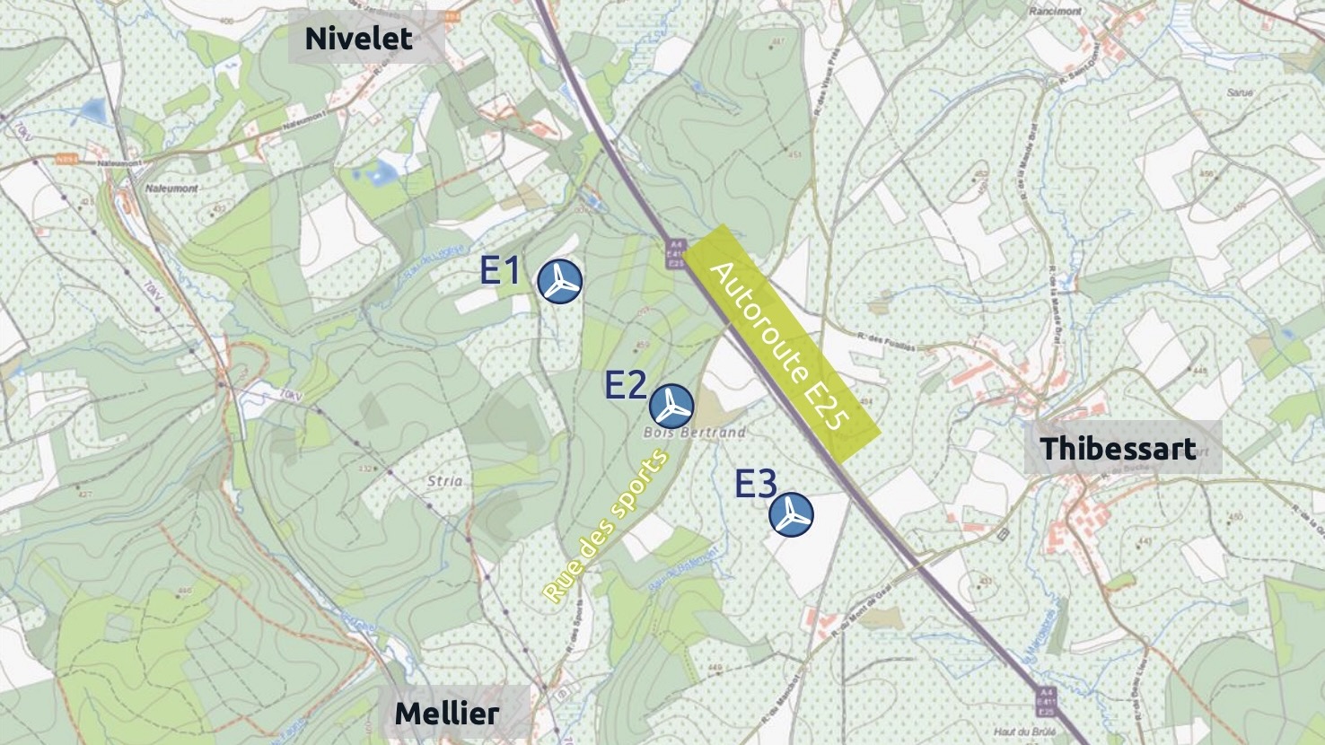 Déposée cette fois par le développeur Storm, la demande porte sur trois éoliennes situées le long de la E411, entre Mellier et Thibessart.