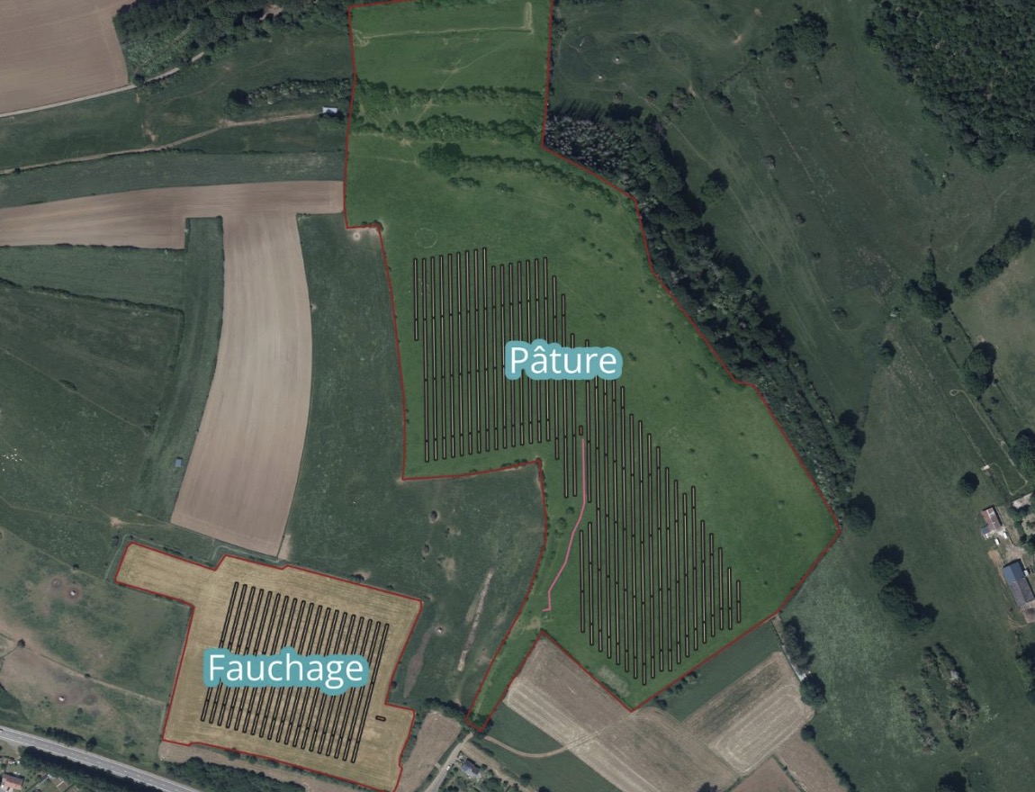 Le dossier est monté en partenariat avec le propriétaire de ces prairies. Son originalité repose sur le maintien des activités agricoles, culture et élevage. Des bovins qui paissent entre les panneaux photovoltaïques : ce serait une première en Belgique.