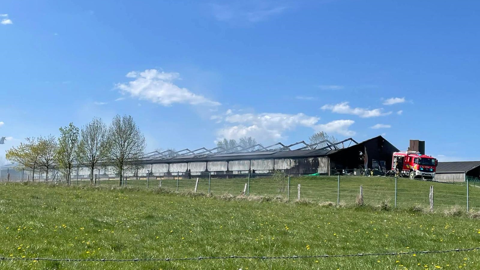 Le feu s'est déclaré dans l'après-midi dans un poulailler de grande envergure du village de Nadrin (Houffalize). La puissance des flammes combinée à de fortes rafales de vent ont eu raison du bâtiment et des 36 000 poules présentes à l'intérieur. L'incendie s'est ensuite propagé dans les bâtiments agricoles situés en face.