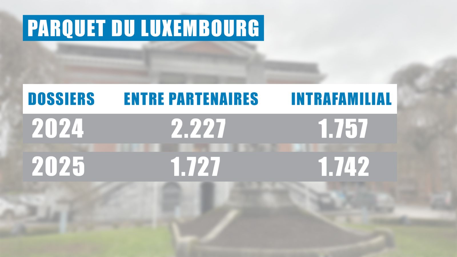 Sur l’année 2024, le parquet du Luxembourg a ouvert en moyenne onze dossiers par jour pour des faits de violence intrafamiliale : six concernent des violences au sein même du couple, cinq impliquent d'autres membres de la famille.