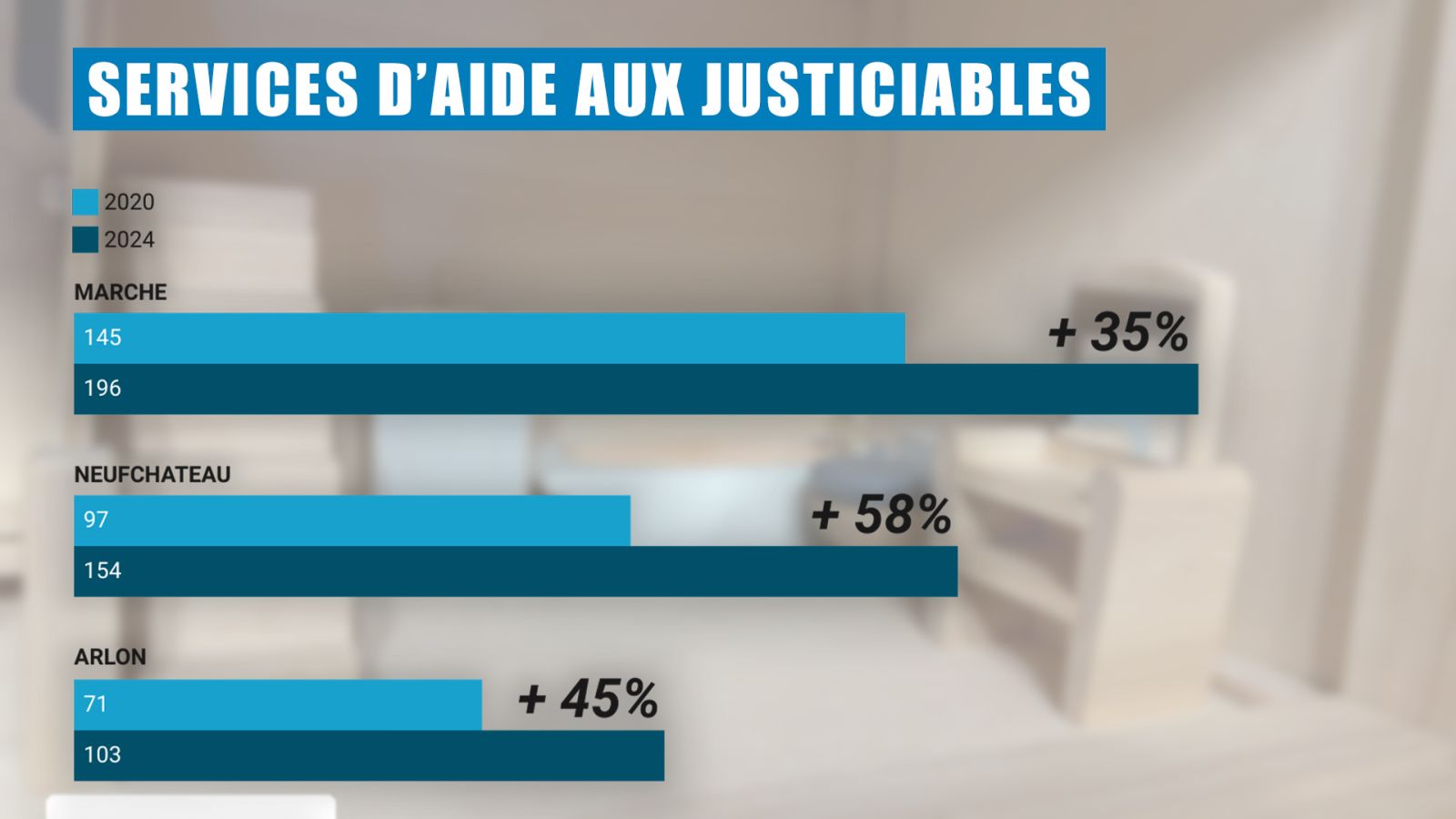 Depuis le printemps 2025, le service d'aide aux justiciables de l'arrondissement judiciaire de Neufchâteau a décentralisé une partie de ses services sur Bastogne, en partenariat avec le Plan de Cohésion Sociale de la ville, et avec les psychologues de première ligne PsyLux.