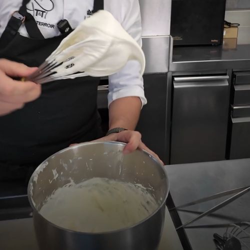 Lorsque la crème commence à épaissir, ralentissez et terminez au fouet à la main. À ce stade, la précision est essentielle.