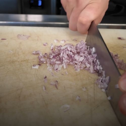 - Émincer consiste à couper l’échalote en fines lamelles.