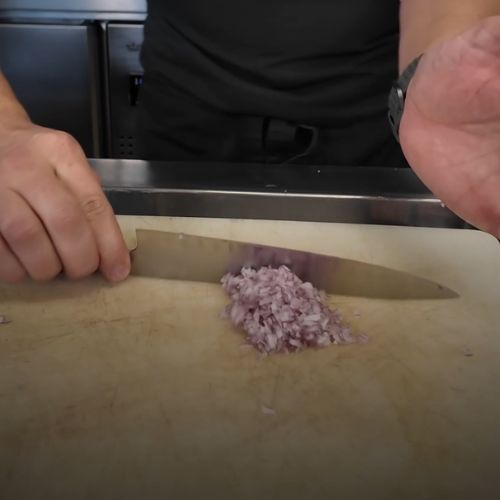 - Hacher, enfin, correspond à des échalotes ciselées que l’on recoupe légèrement pour une texture encore plus fine.