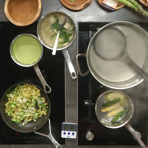 - Ajoutez les asperges vertes pour 1 minute 30 supplémentaire.