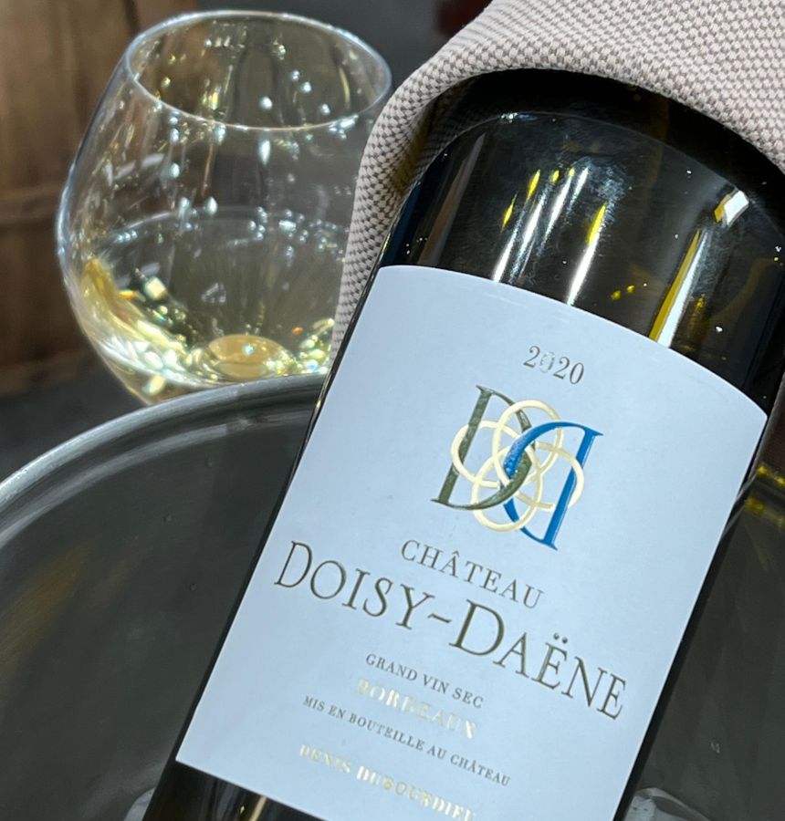 Pour accompagner cette recette, Pascal Carré, accompagné de Michel Boreux, recommande le Château Doisy-Daëne 2020, un grand vin blanc sec de Bordeaux.